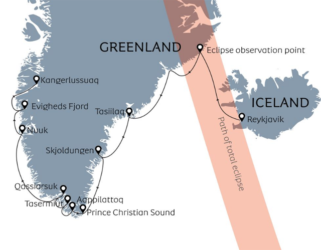 sails across the Denmark Strait, our eclipse experts onboard will take