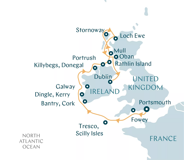 Returning back across the channel, you’ll arrive in the picturesque Cornish town of Fowey. With strong ties to its Celtic roots, this beautiful historical town has a wonderful selection of shops and eateries to explore. Nearby you’ll find the world-famous Eden Project and the Lost Gardens of Heligan. The port here is deep but small, so with your boutique cruise ship as the star attraction, you can be guaranteed a warm, friendly Cornish welcome.