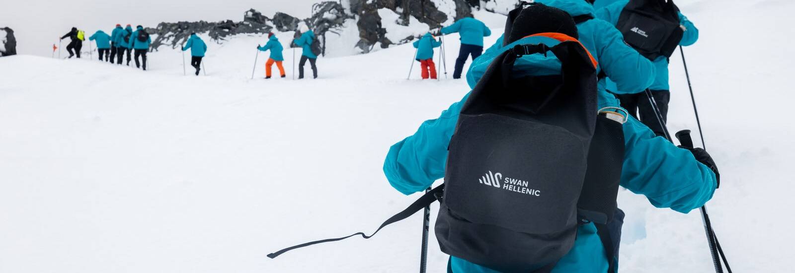 - Branded Swan Hellenic expedition parka and use of rubber