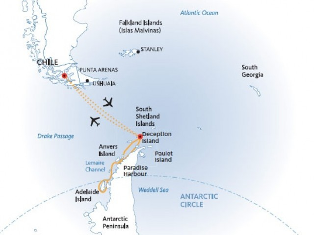 flight across the Drake Passage to Punta Arenas, Chile brings your
