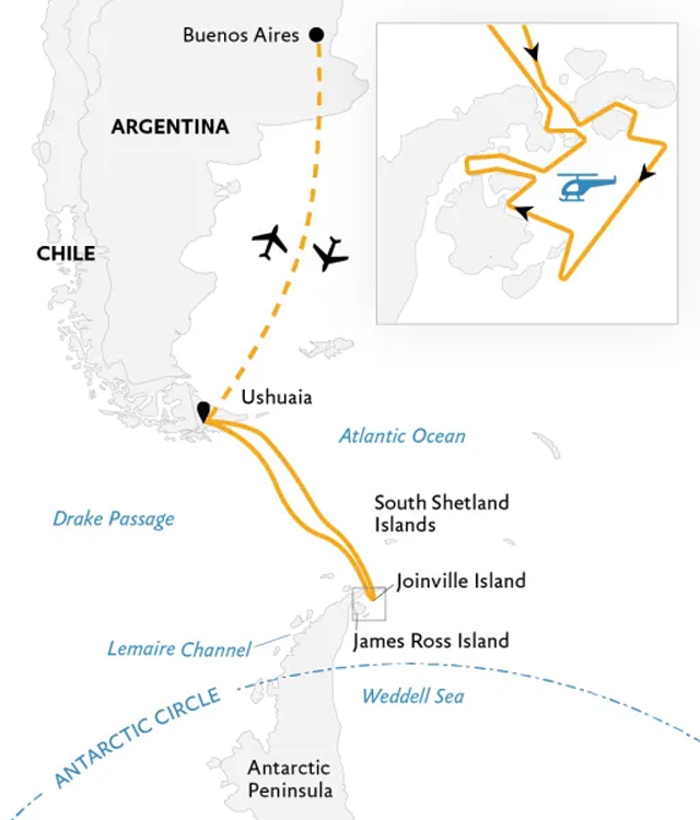 and board our private charter flight to Ushuaia, Argentina. Upon