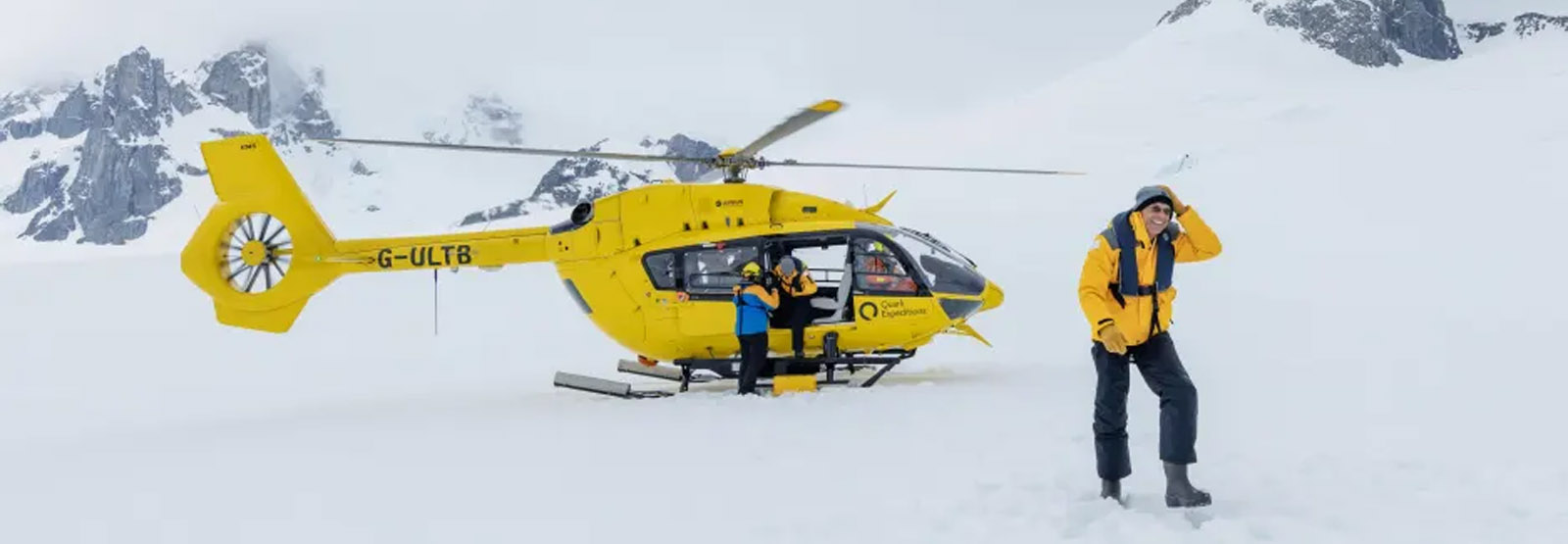 in one heli-landing amidst Antarctica's vast coastal mountains