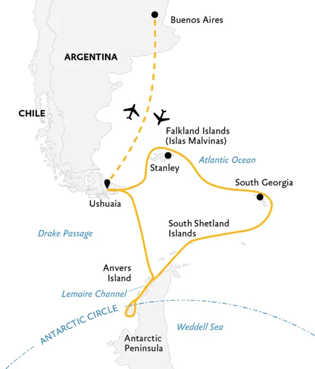 - Group transfer from Ushuaia airport to the ship, and return (Note: Transfer on arrival in Buenos Aires from airport to hotel at the beginning of the journey is not included. Please make your way to the included hotel.)