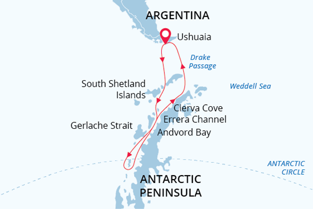 passing the islands of Tierra del Fuego, we turn south to begin our