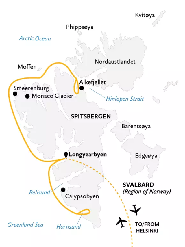 flight from Longyearbyen to finishing city (Helsinki)