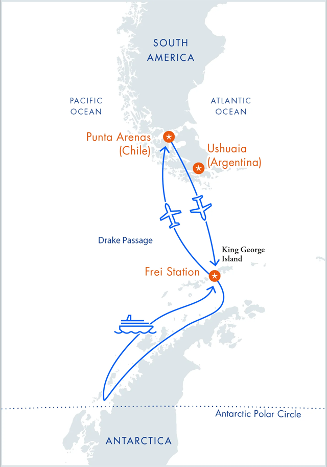 from Punta Arenas to Frei Station on King George Island and/or vice