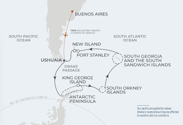 landings and Zodiac safaris. All itinerary routes serve as examples and