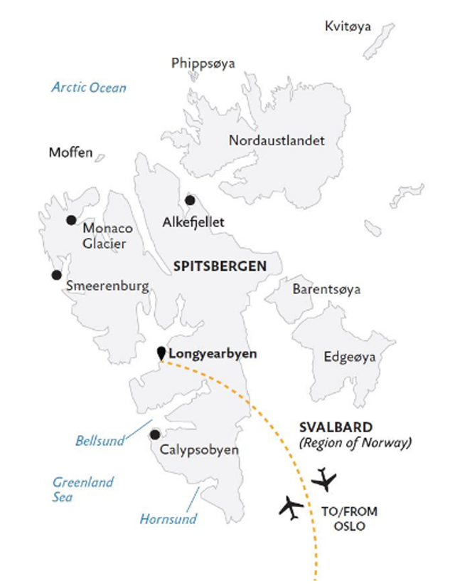 adventure ends in the frontier-style settlement of Longyearbyen. From