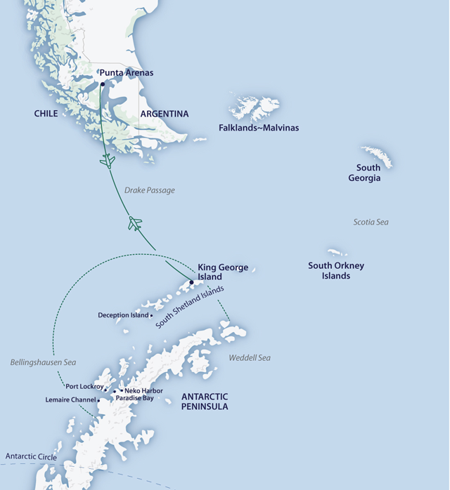 (1 hour, 45 minutes) to Punta Arenas, Chile. On arrival at the Punta