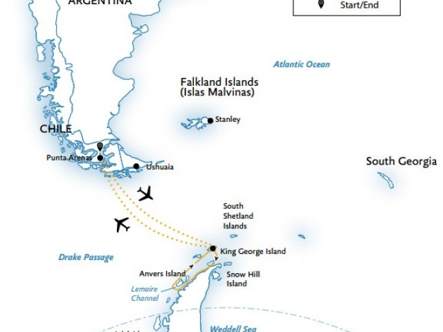 flight across the Drake Passage to Punta Arenas, Chile, brings your
