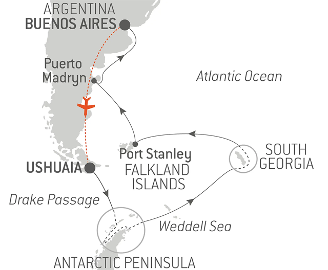 the Valdes Peninsula, the Falkland Islands, South Georgia and the