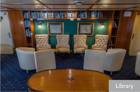 On the Captain’s Deck, you will find a small library of polar books, reference materials and general reading material. The library is open 24 hours a day and also includes a selection of games for your entertainment. Whatever your personal interests are, we’re sure you’ll find something worth reading. The collection includes books in multiple languages covering subjects like wildlife, history, marine biology, ecology and geology. A large collection of field guides, picture books and reference books is also at your disposal.