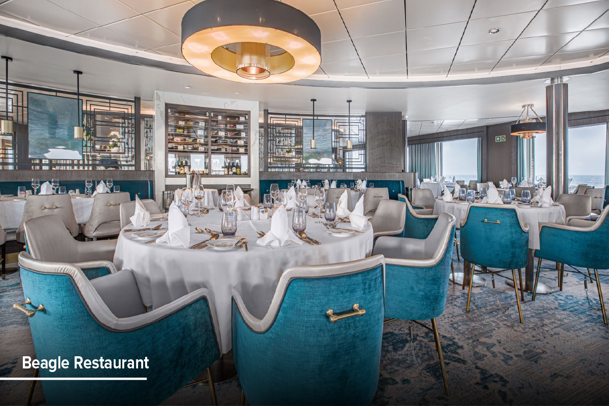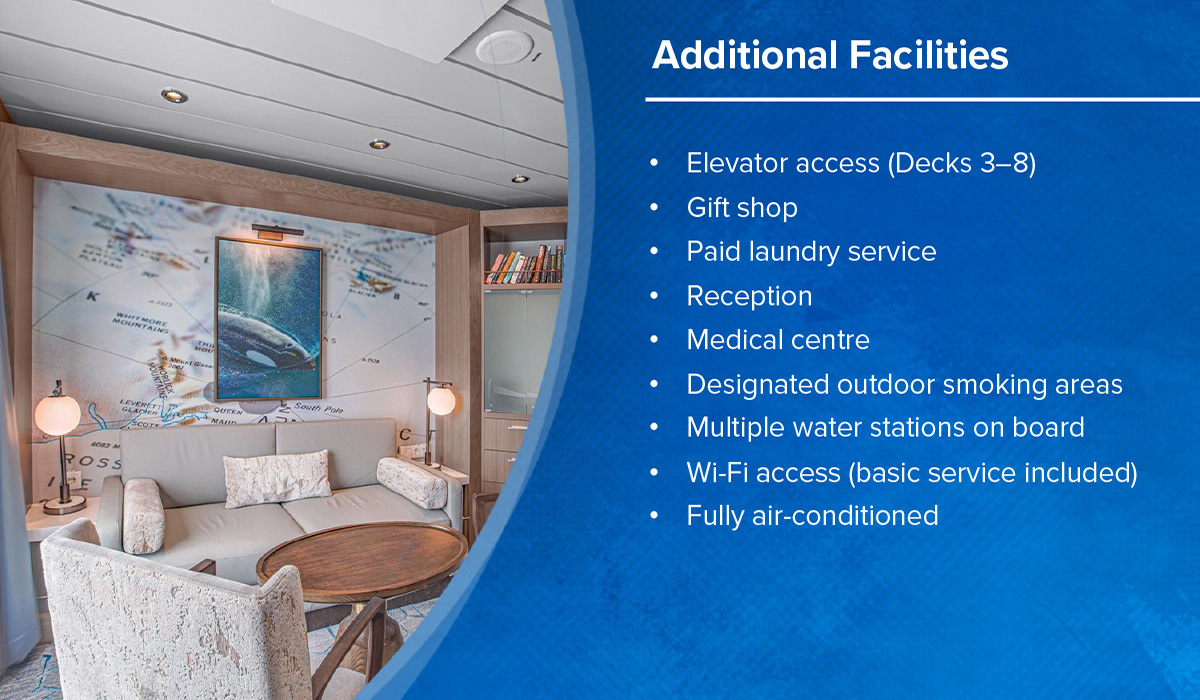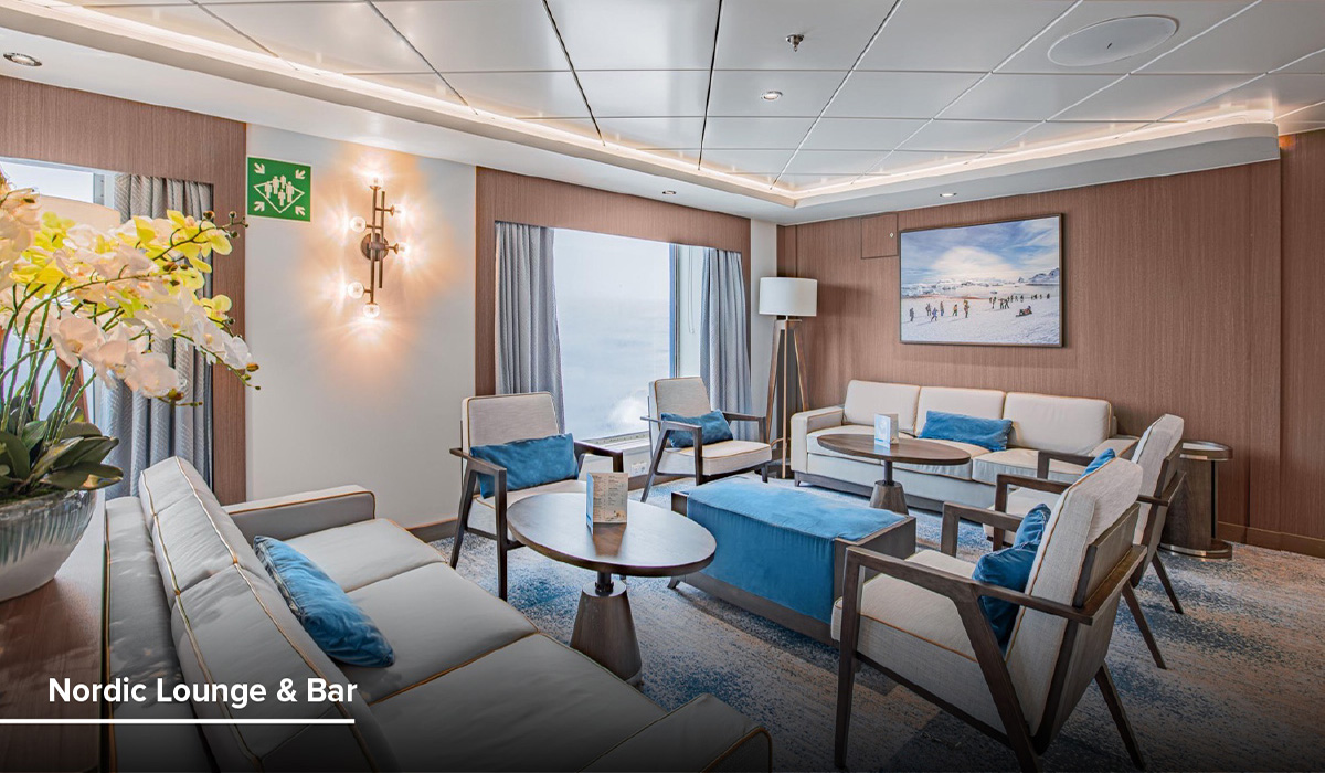 Relax in comfortable seating, enjoy sweeping polar views, and share conversation in a welcoming atmosphere designed to celebrate exploration and create memorable moments throughout your journey.