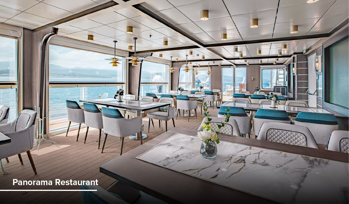 Dine with sweeping top-deck views, enjoying distinctive menus in a setting that celebrates both flavour and scenery.